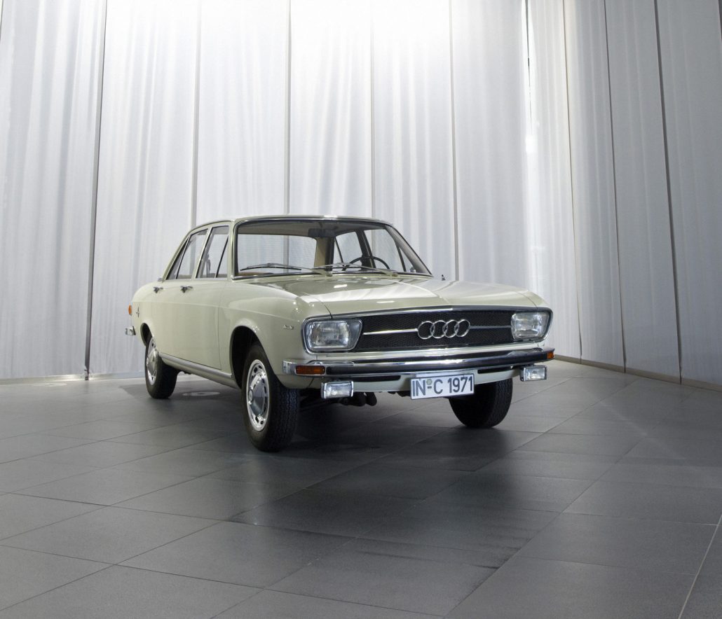 Der anfangs geheim und ohne Wissen der Konzernmutter Volkswagen entwickelte Audi 100 sichert Ende der sechziger Jahre die durchaus ungewisse Zukunft der Marke Audi. Das Auto kann vor allem durch ein modernes technisches Gesamtkonzept und durch konsequenten Leichtbau beeindrucken: Der in der oberen Mittelklasse positionierte Audi wiegt kaum mehr als die kleineren Audi Modelle. Dadurch werden auch mit vergleichsweise kleinen, sparsamen Motoren ansprechende Fahrleistungen erreicht.