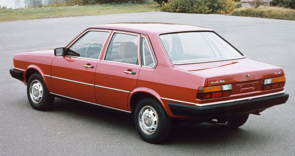 Der Audi 80 B2 wurde als zwei- sowie als viertürige Stufenhecklimousine angeboten. Ab 1980 wurde die Baureihe durch einen Dieselmotor mit 1600 ccm Hubraum erweitert. Ab 1981 gab es eine „ E-Version“. Diese Energiespar-Ausführung hatte serienmäßig ein Fünfganggetriebe und eine Start-Stop-Anlage, mit der man den Motor bei Ampelstopps durch Druck auf einen Knopf im Scheibenwischerhebel ausschalten konnte. Bei Betätigung von Kupplungs- und Gaspedal startete dieser wieder. Unser Austellungsstück ist eine luxuriöse GL-Version mit feiner Velour-Polsterung im Innenraum. Der sehr große Kofferraum hatte eine hohe Ladekante und gleichzeitig eine enorme Tiefe, die v.a. das Entladen von schweren Gepäckstücken schwierig machte.