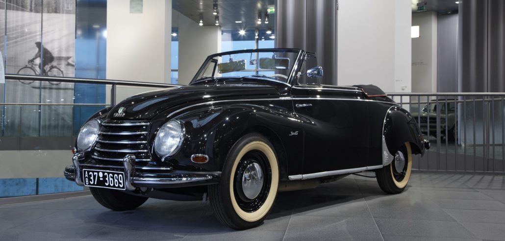 Der DKW 3=6 wird in vielen verschiedenen Karosserieformen angeboten: als Limousine, zwei- und viersitziges Coupé, zwei- und viersitziges Cabriolet und als Kombi. Die Karosserie des ausgestellten zweisitzigen Cabriolets wird bei Karmann gefertigt und gehört zu den Traumwagen der 50er-Jahre: beliebt bei der Prominenz und oft gesehen im deutschen Heimatfilm dieser Zeit.